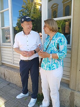 Am internationalen "Parking Day" verwandeln sich Parkplätze in bunte Begegnungsorte. Dabei ergab sich sogar ein Gespräch zwischen der ADFC-Vorsitzenden Claudia Bischlager und dem Kitzinger Oberbürgermeister Stefan Güntner.